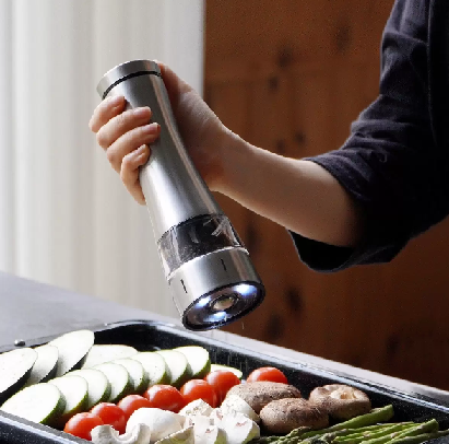 パワフルなモーターとシンプルなワンタッチ操作で、素早く正確に挽くことができます。 6段階の粗さ調節が可能で、どんな料理にも合うように挽き具合をカスタマイズできます。 また、内蔵のLEDライトが暗い場所でも完璧な味付けを可能にします。 人間工学に基づいたグリップ、洗練されたマットなステンレススチール仕上げ、 衛生的な収納スタンドなど、スタイルと利便性の両方を考慮したデザインです。 |